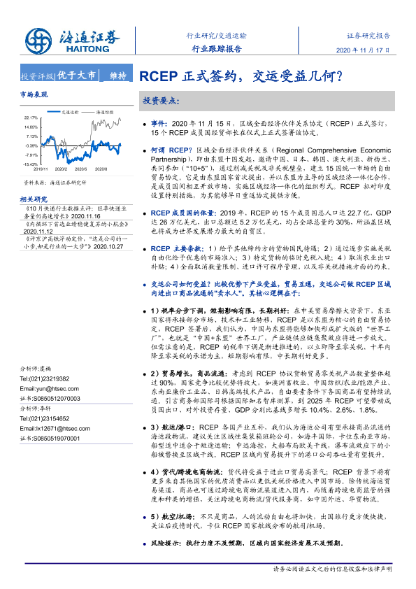 【海通证券】【20201117】交通运输行业跟踪报告:RCEP正式签约,交运受益几何?-3页
