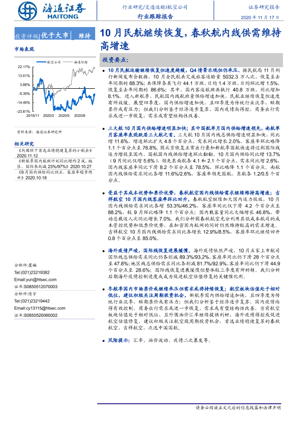 【海通证券】【20201117】10月民航继续恢复,春秋航内线供需维持高增速-4页