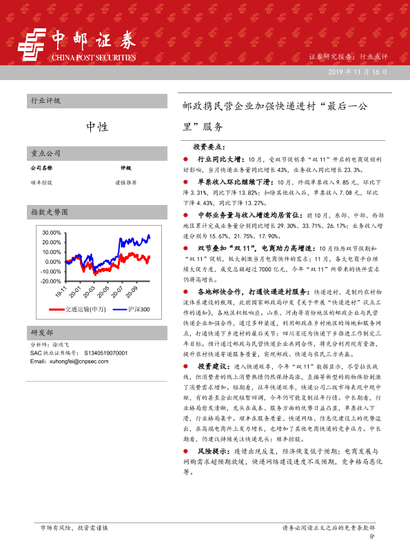 【中邮证券】【20201116】交运物流行业点评:邮政携民营企业加强快递进村“最后一公里”服务-9页