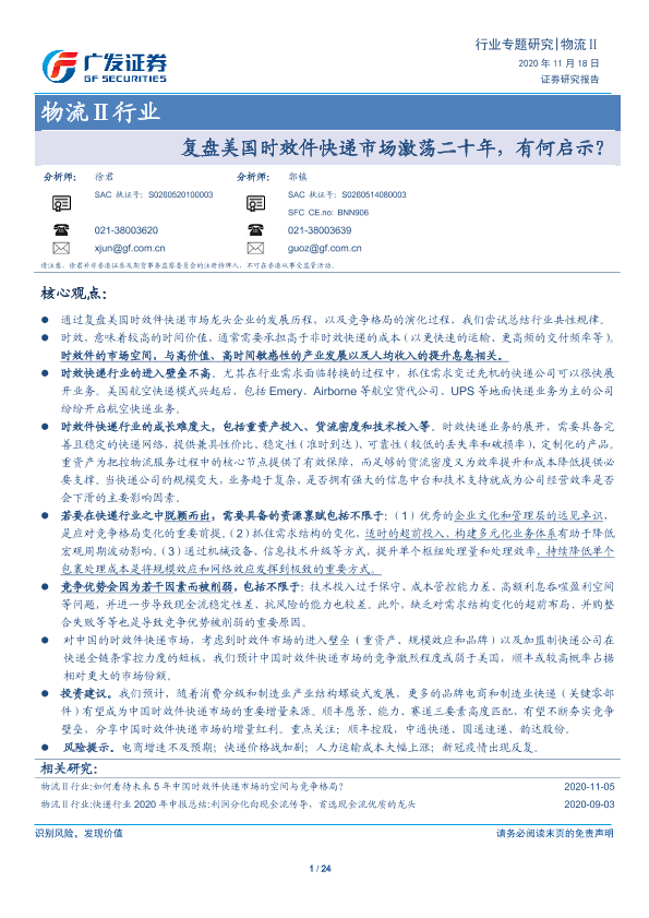 【广发证券】【20201118】复盘美国时效件快递市场激荡二十年,有何启示?-24页