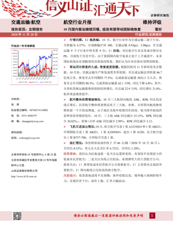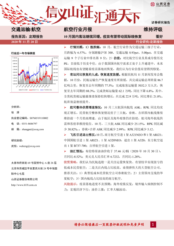 【山西证券】【20201120】10月国内客运继续回暖,疫苗有望带动国际线恢复-13页