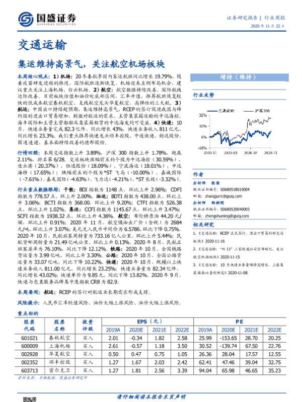 【国盛证券】【20201122】交通运输行业周报:集运维持高景气,关注航空机场板块-22页