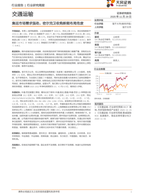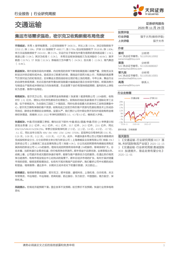 【天风证券】【20201129】交通运输行业:集运市场需求强劲,密尔克卫收购新能布局危废-13页