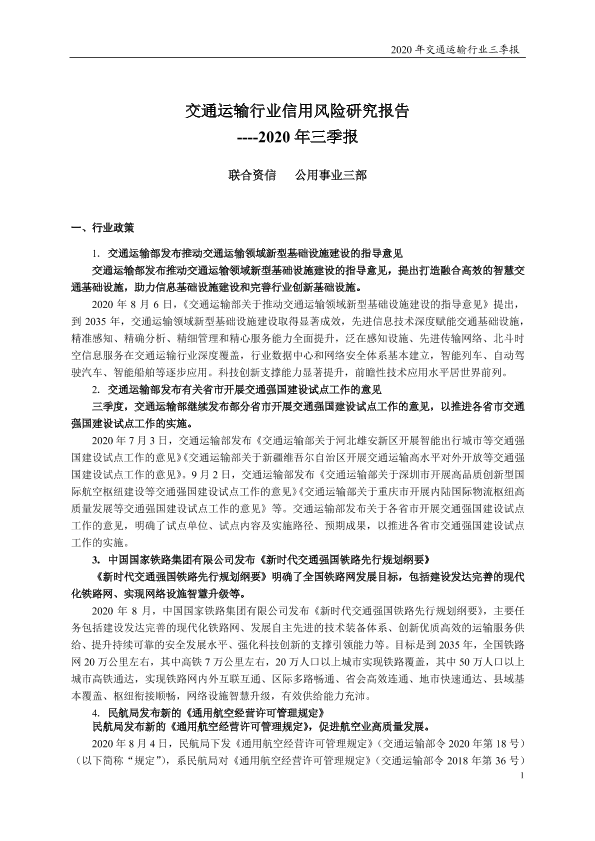 【联合资信】【20201201】2020年三季报:交通运输行业信用风险研究报告-7页