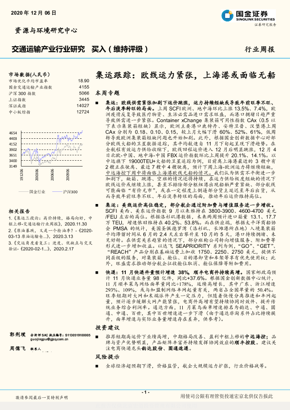 【国金证券】【20201206】集运跟踪:欧线运力紧张,上海港或面临无船-14页