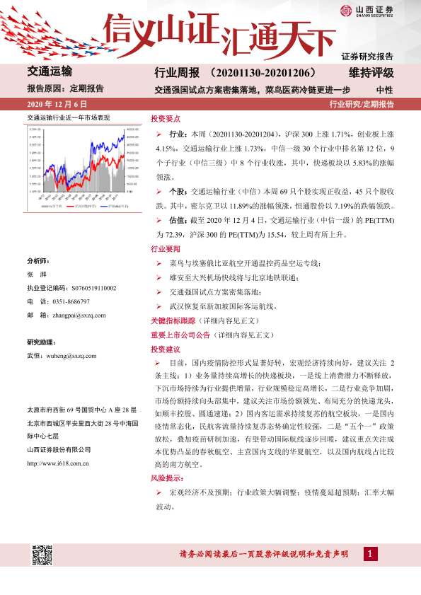 【山西证券】【20201206】交通运输行业周报:交通强国试点方案密集落地,菜鸟医药冷链更进一步-14页