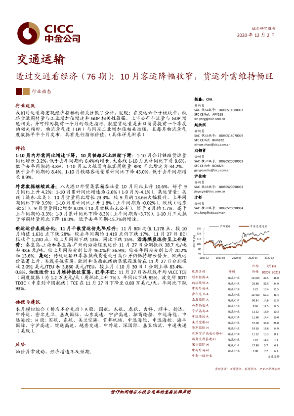 【中金公司】【20201202】透过交通看经济(76期):10月客运降幅收窄,货运外需维持畅旺-26页
