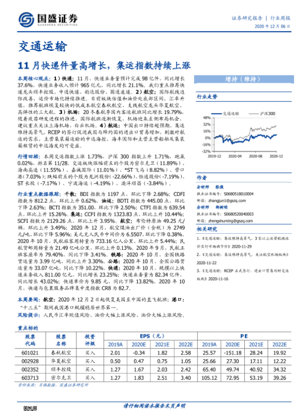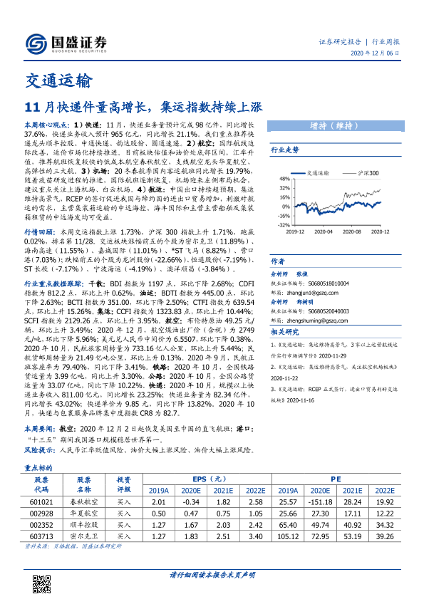 【国盛证券】【20201206】11月快递件量高增长,集运指数持续上涨-21页