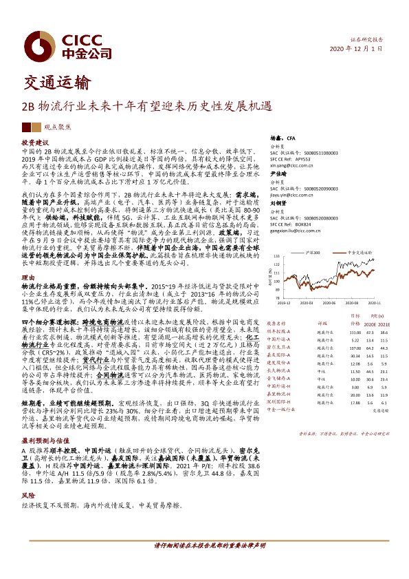 【中金公司】【20201201】交通运输:2B物流行业未来十年有望迎来历史性发展机遇-35页
