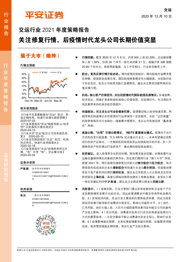 【平安证券】【20201210】交运行业2021年度策略报告:关注修复行情,后疫情时代龙头公司长期价值突显-27页