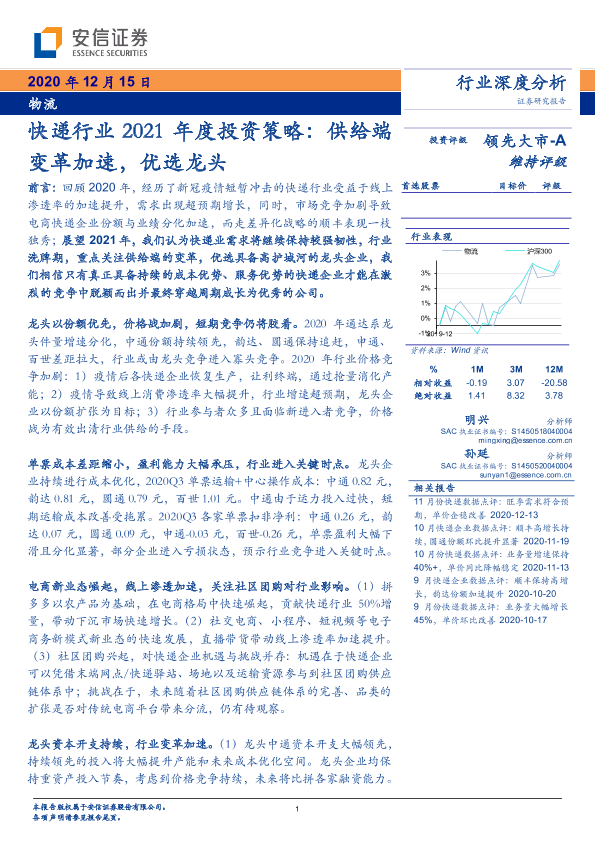 【安信证券】【20201215】快递行业2021年度投资策略:供给端变革加速,优选龙头-25页