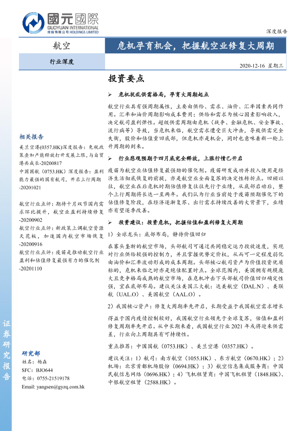 【国元国际】【20201216】航空行业深度:危机孕育机会,把握航空业修复大周期-25页