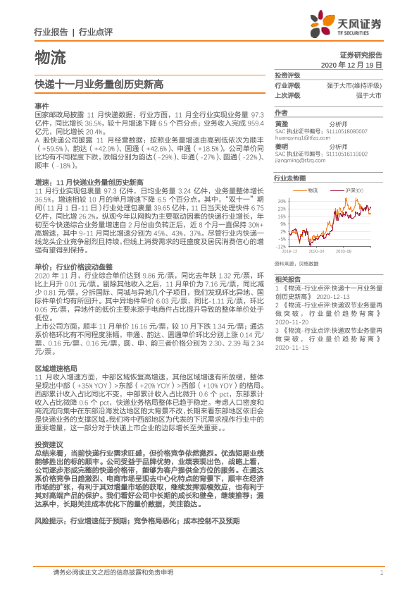 【天风证券】【20201219】物流行业点评:快递十一月业务量创历史新高-7页