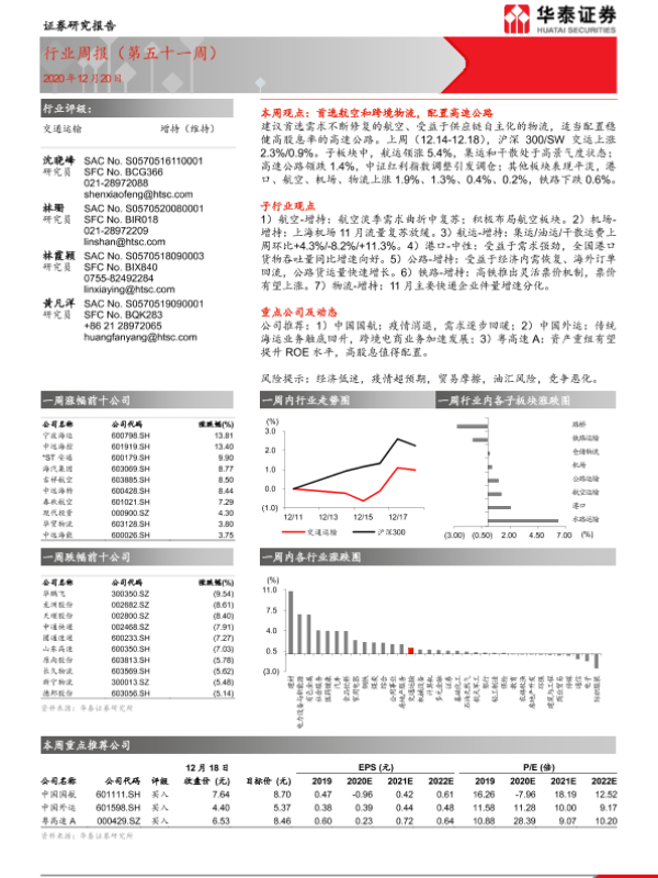 【华泰证券】【20201220】交通运输行业周报(第五十一周)-10页