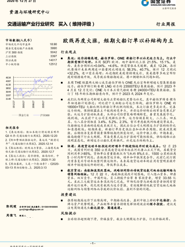【国金证券】【20201227】欧线再度大涨,短期大船订单以补结构为主-9页