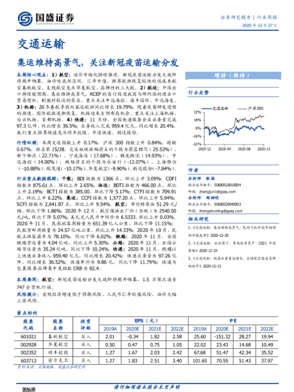 【国盛证券】【20201227】交通运输行业周报:集运维持高景气,关注新冠疫苗运输分发-22页