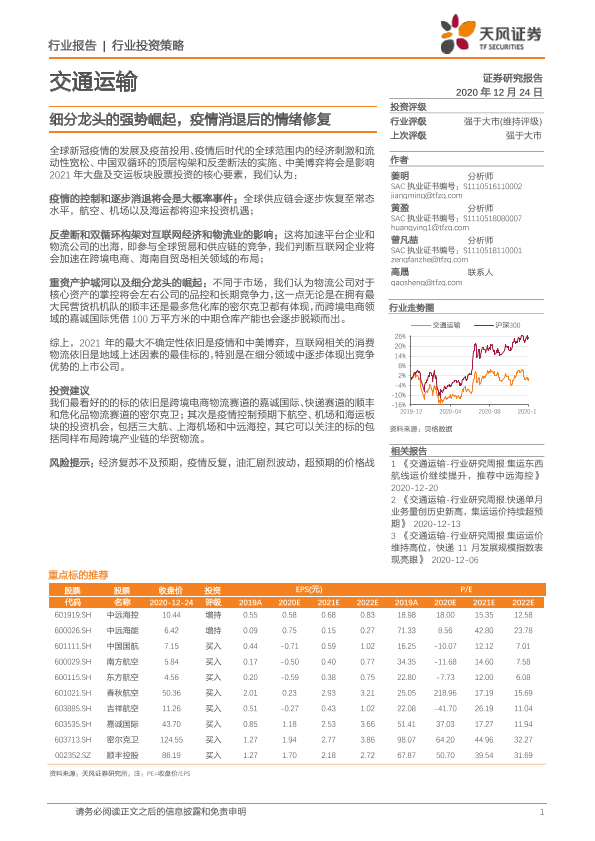 【天风证券】【20201224】交通运输行业投资策略:细分龙头的强势崛起,疫情消退后的情绪修复-41页