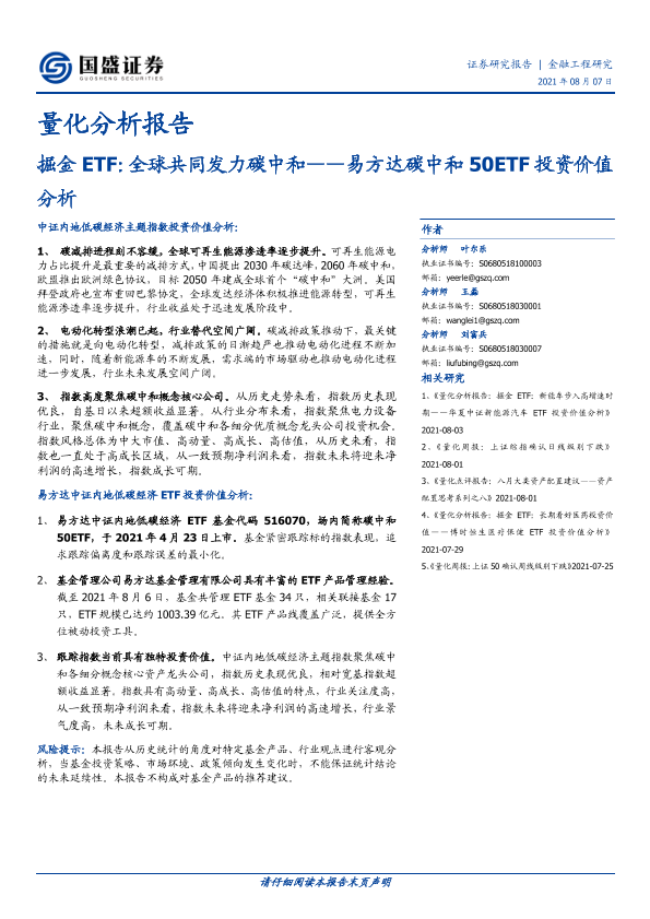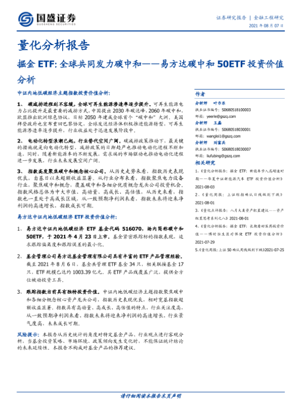 【国盛证券】【20210807】量化分析报告:掘金ETF,全球共同发力碳中和——易方达碳中和50ETF投资价值分析-19页