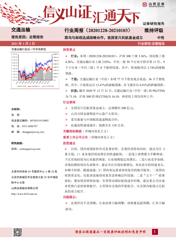 【山西证券】【20210102】交通运输行业周报:菜鸟与邮政达成战略合作,我国首只民航基金成立-14页