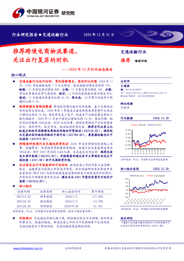 【银河证券】【20201231】交通运输行业2020年12月行业动态报告:推荐跨境电商物流赛道,关注出行复苏的时机-40页