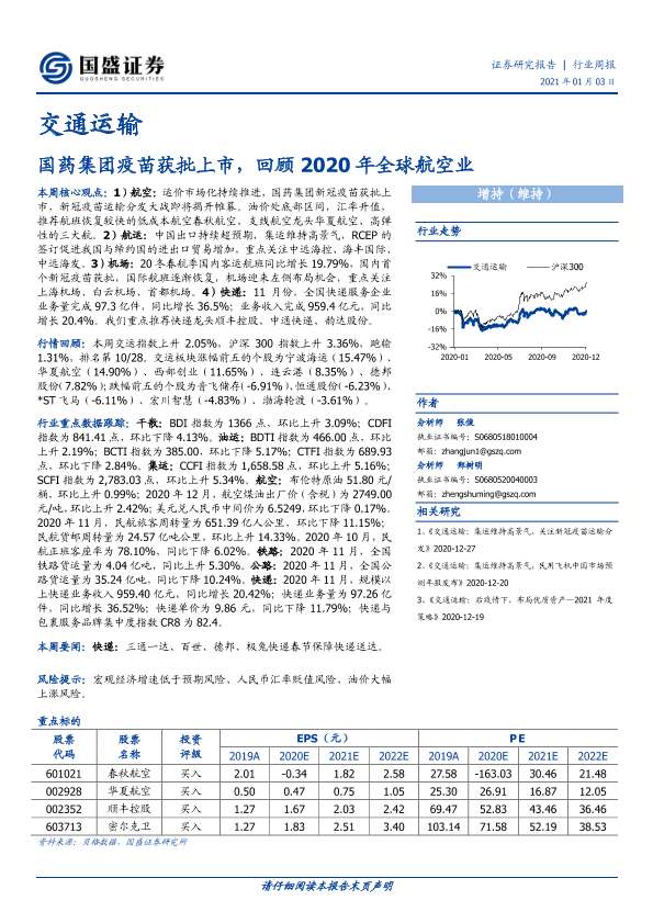 交通运输 快递物流 新冠疫苗 航空业 航运