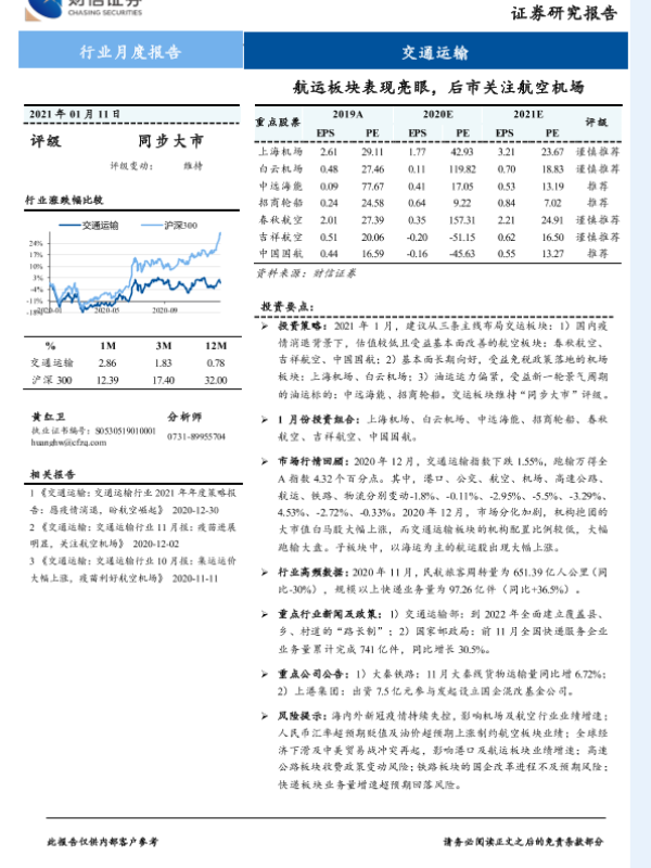 交通运输 投资策略 航空机场 航运板块 证券研究