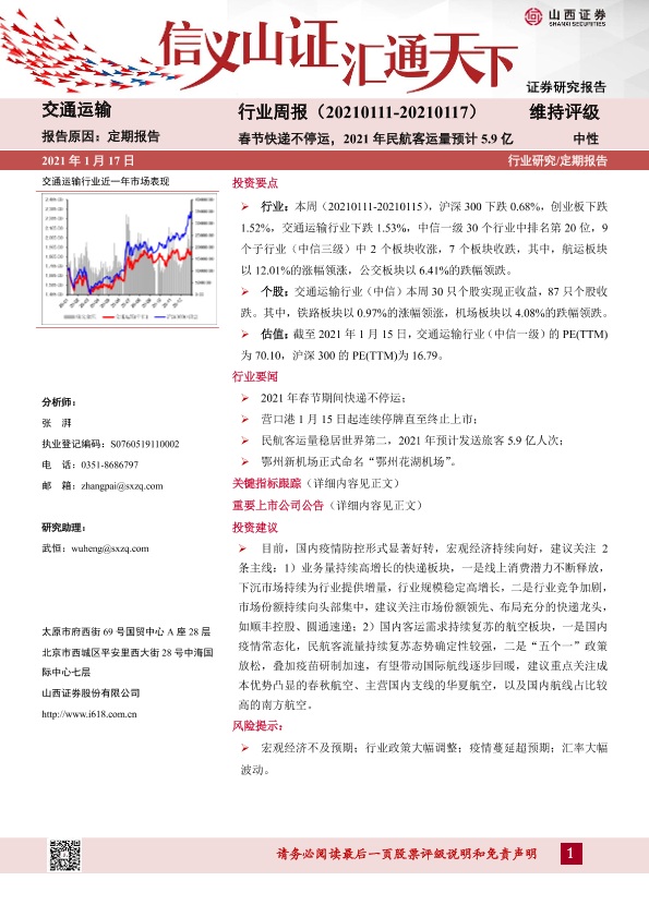 【山西证券】【20210117】交通运输行业周报:春节快递不停运,2021年民航客运量预计5.9亿-14页
