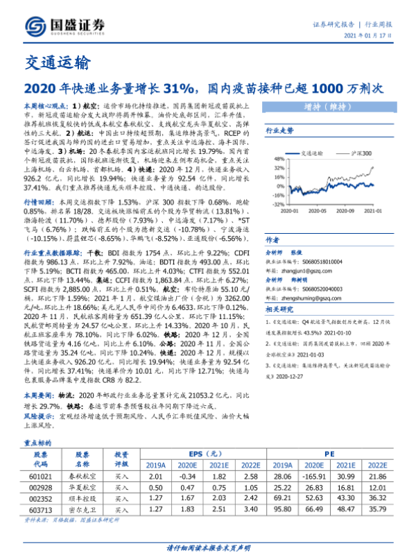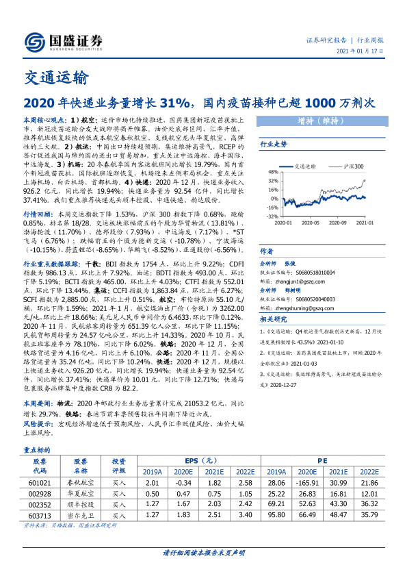 交通运输 快递业务 疫苗接种 航空运输 航运市场