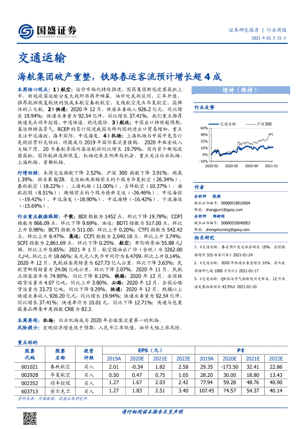 【国盛证券】【20210131】交通运输行业周报:海航集团破产重整,铁路春运客流预计增长超4成-23页