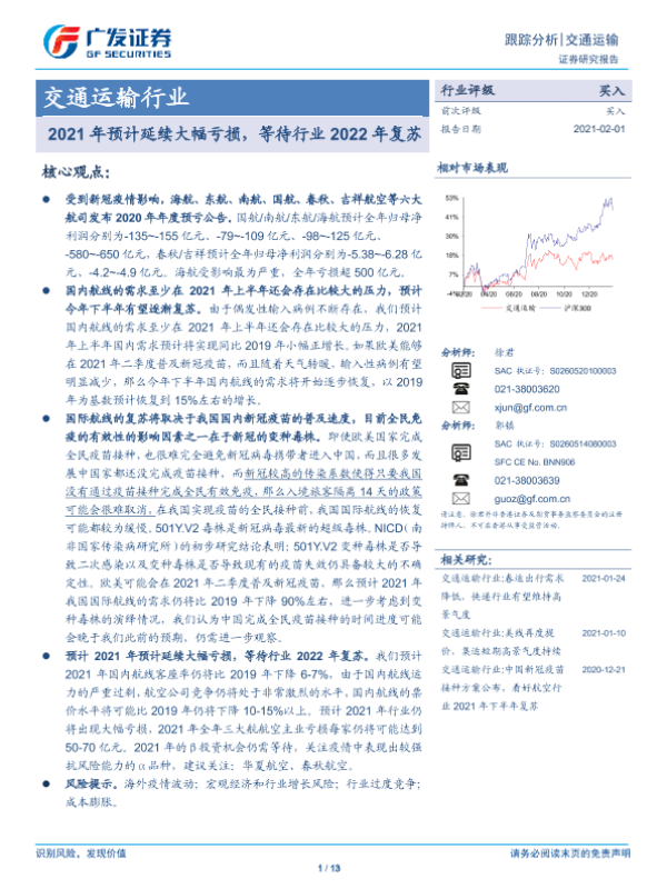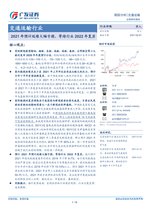 【广发证券】【20210201】交通运输行业跟踪分析:2021年预计延续大幅亏损,等待行业2022年复苏-13页
