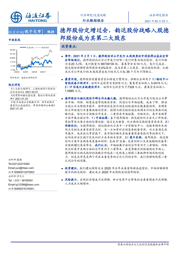 【海通证券】【20210203】德邦股份定增过会,韵达股份战略入股德邦股份成为其第二大股东-4页