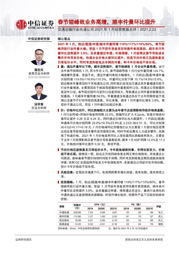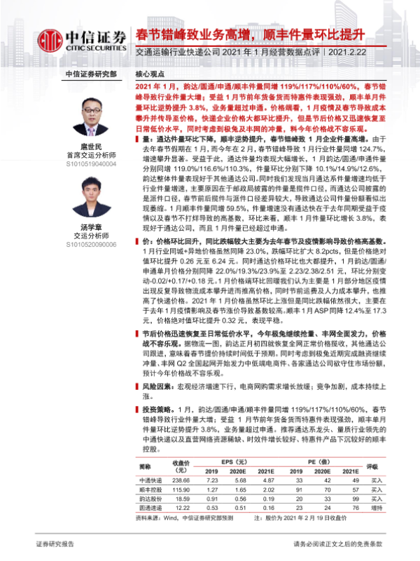 【中信证券】【20210222】交通运输行业快递公司2021年1月经营数据点评-2页