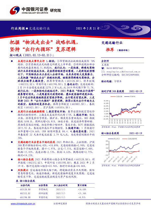 【银河证券】【20210221】交通运输行业周报:把握“物流走出去”战略机遇,坚持“出行内循环”复苏逻辑-21页