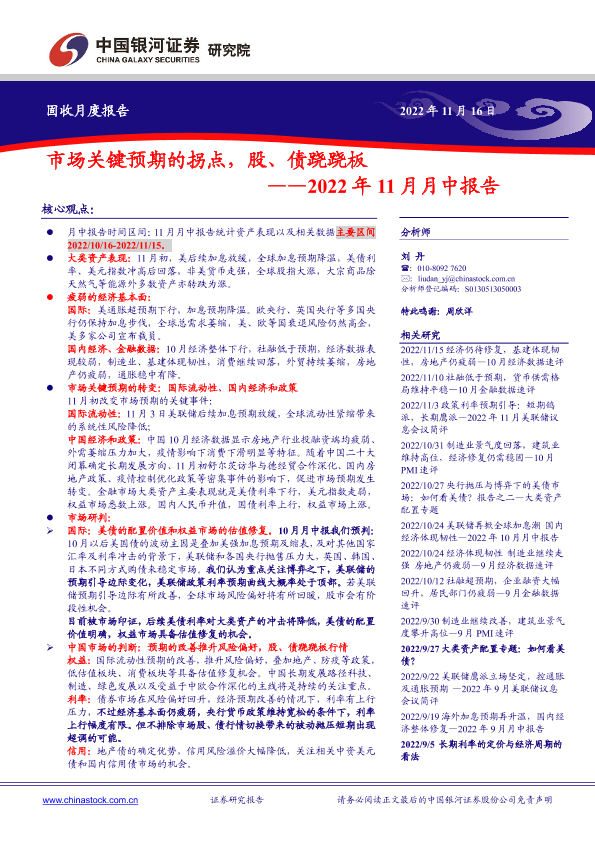 【银河证券】【20221116】2022年11月月中报告:市场关键预期的拐点,股、债跷跷板-27页
