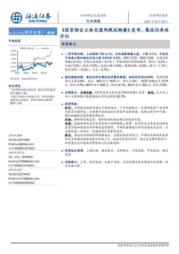 【海通证券】【20210228】交通运输行业周报:《国家综合立体交通网规划纲要》发布,集运仍具性价比-9页