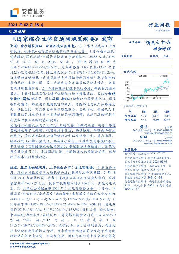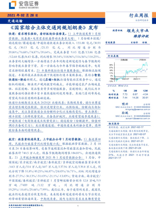 【安信证券】【20210228】交通运输行业周报:《国家综合立体交通网规划纲要》发布-17页
