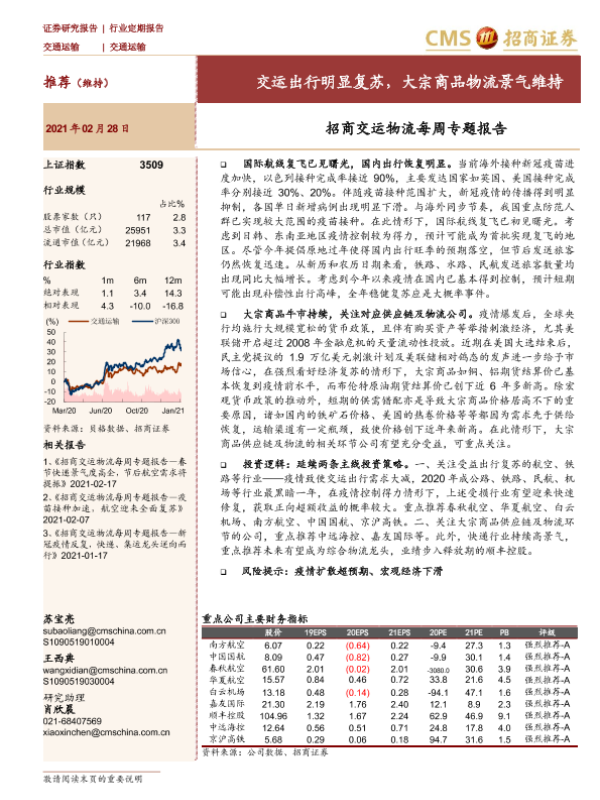 交通运输 国际航线 大宗商品物流 疫苗接种 航空复苏
