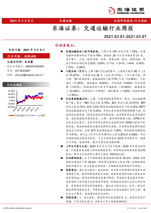 【东海证券】【20210308】交通运输行业周报-10页