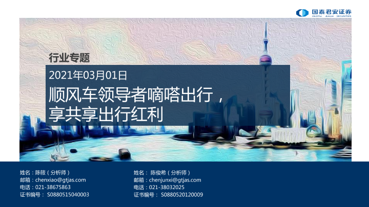 【国泰君安证券】【20210301】顺风车领导者嘀嗒出行,享共享出行红利-24页