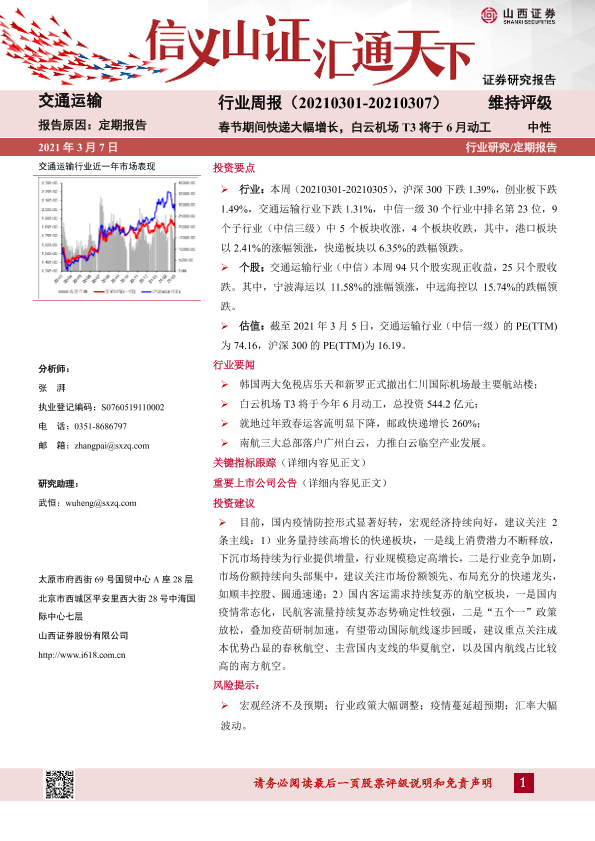 【山西证券】【20210307】春节期间快递大幅增长,白云机场T3将于6月动工-14页