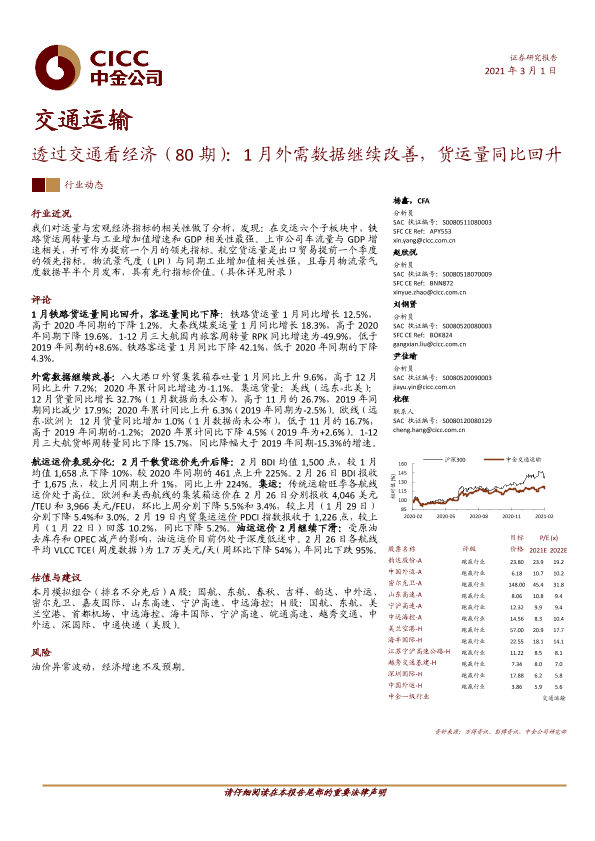 【中金公司】【20210301】透过交通看经济(80期):1月外需数据继续改善,货运量同比回升-26页