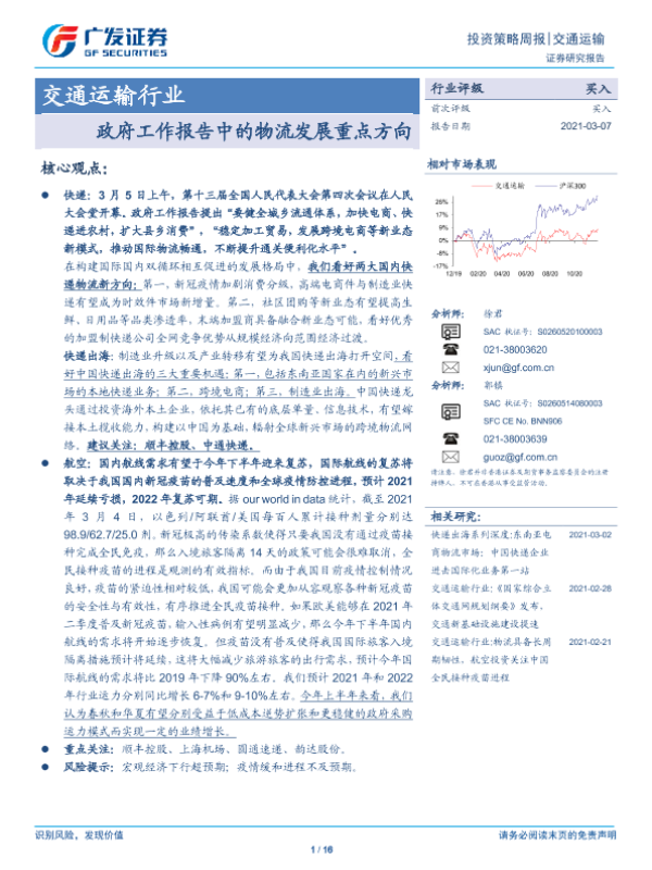 【广发证券】【20210307】政府工作报告中的物流发展重点方向-16页