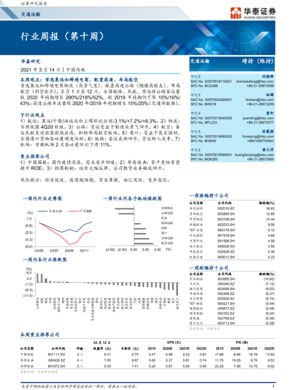 【华泰证券】【20210314】交通运输行业周报(第十周)-10页