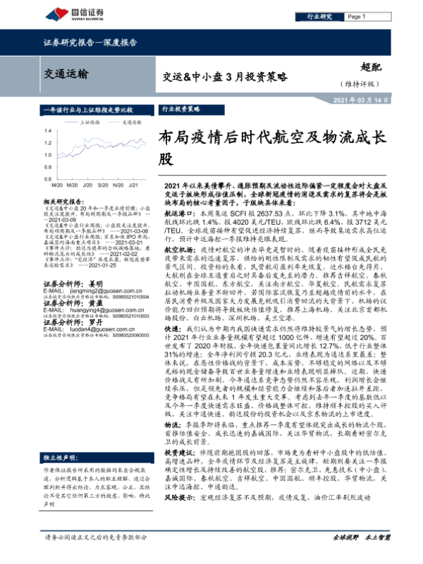 【国信证券】【20210314】交运&中小盘3月投资策略:布局疫情后时代航空及物流成长股-17页