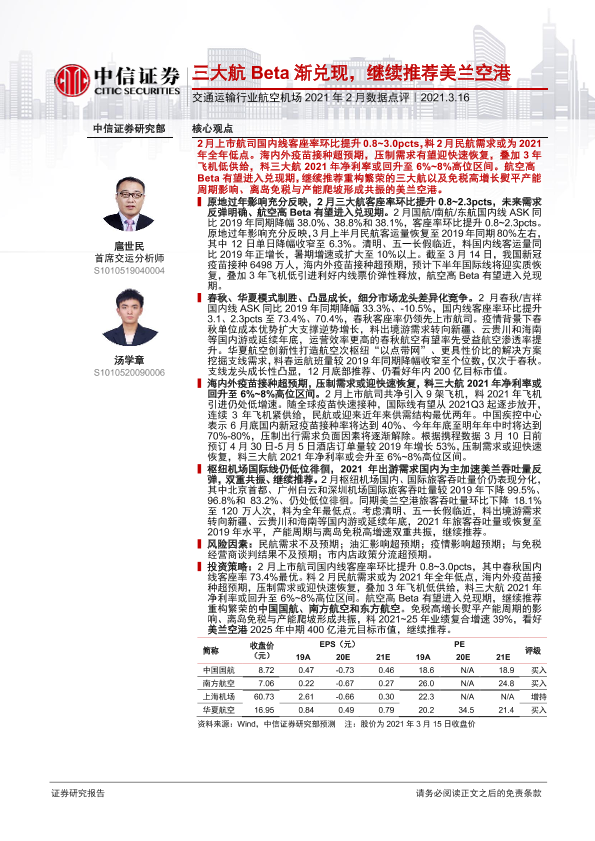 【中信证券】【20210316】交通运输行业航空机场2021年2月数据点评-11页