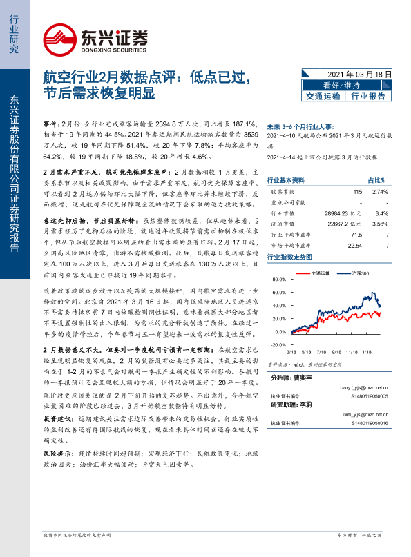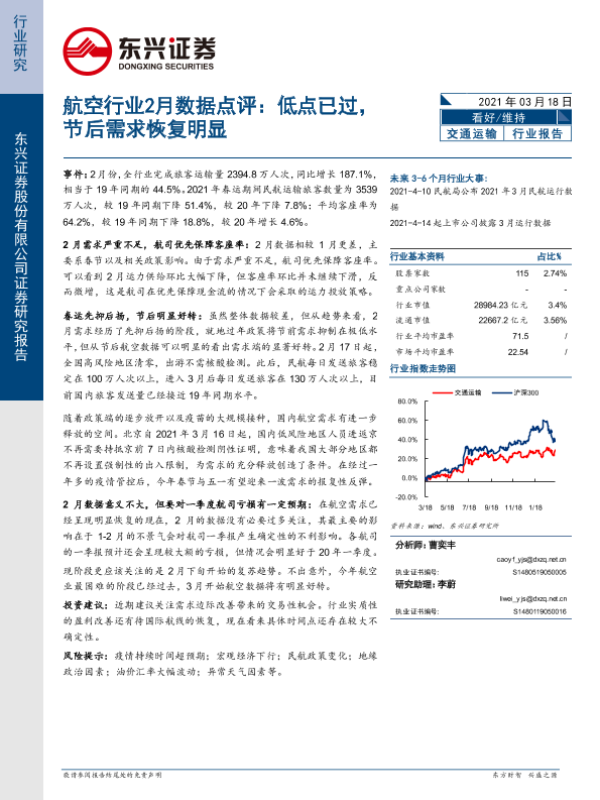 【东兴证券】【20210318】航空行业2月数据点评:低点已过,节后需求恢复明显-10页