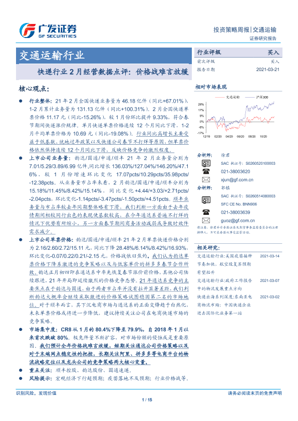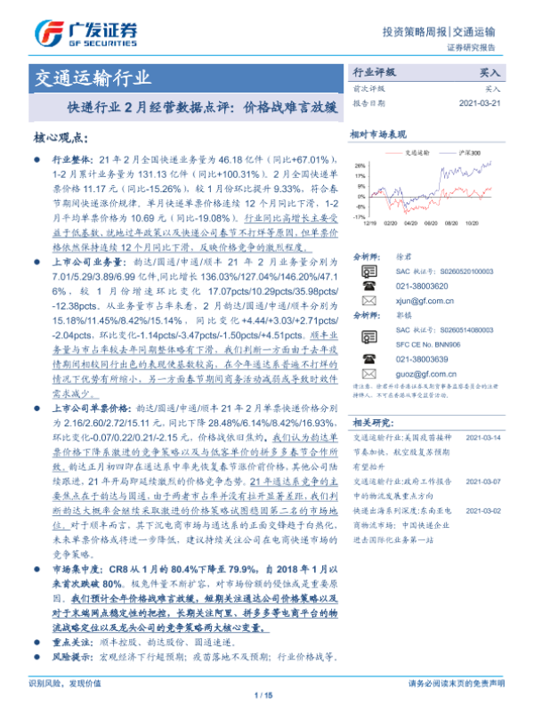 【广发证券】【20210321】快递行业2月经营数据点评:价格战难言放缓-15页