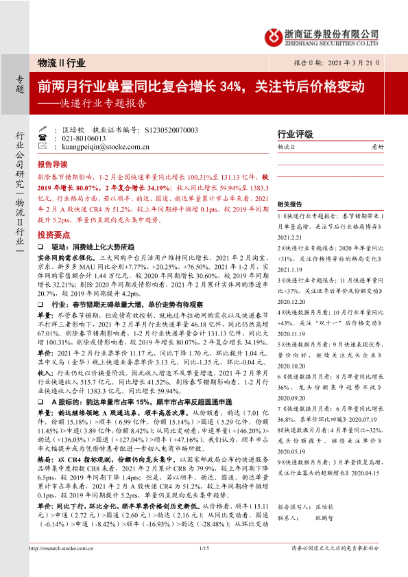 【浙商证券】【20210321】前两月行业单量同比复合增长 34%,关注节后价格变动-15页