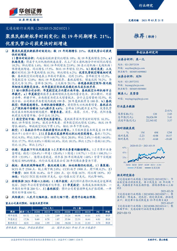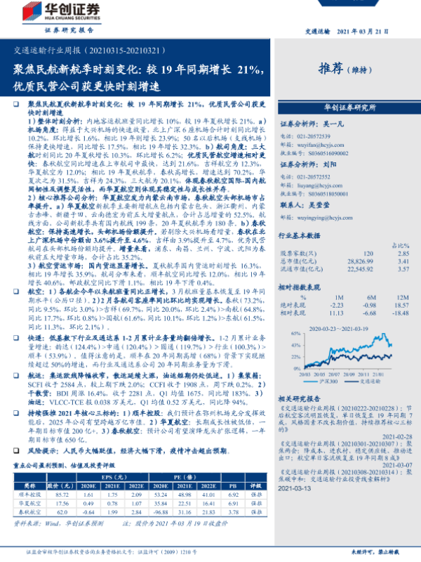 【华创证券】【20210321】交通运输行业周报:聚焦民航新航季时刻变化-37页
