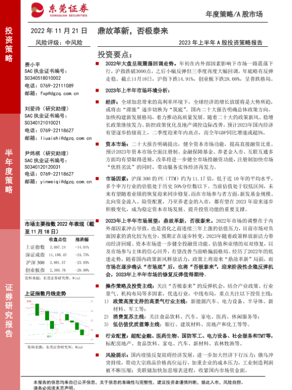 【东莞证券】【20221121】2023年上半年A股投资策略:鼎故革新,否极泰来-43页